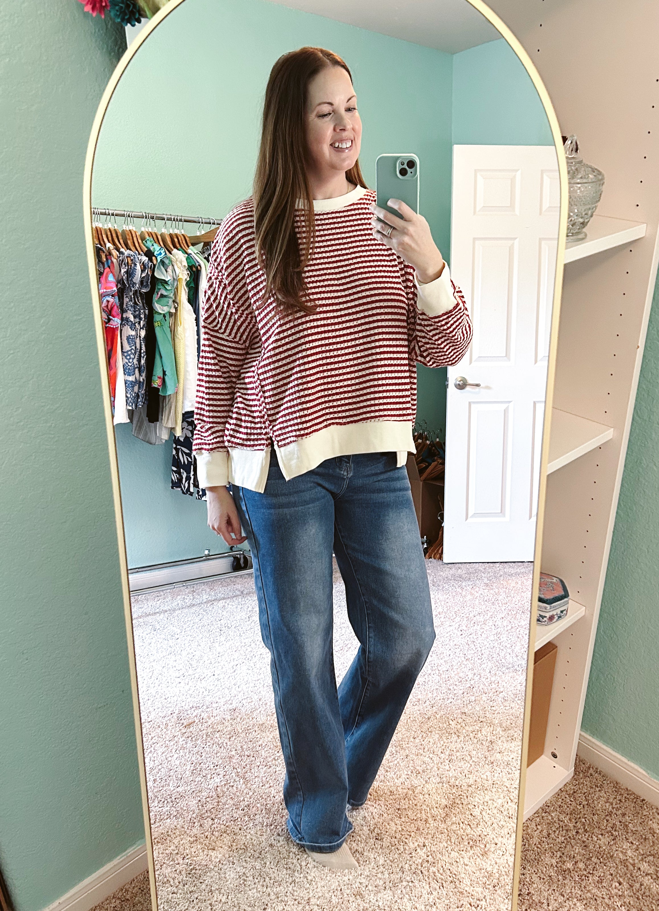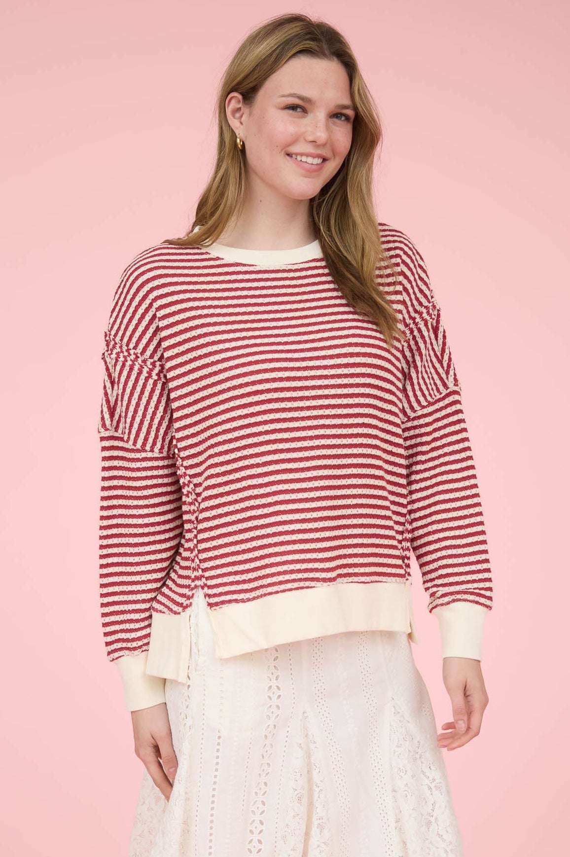 Love Me Do Red Striped Split Hem Sweater