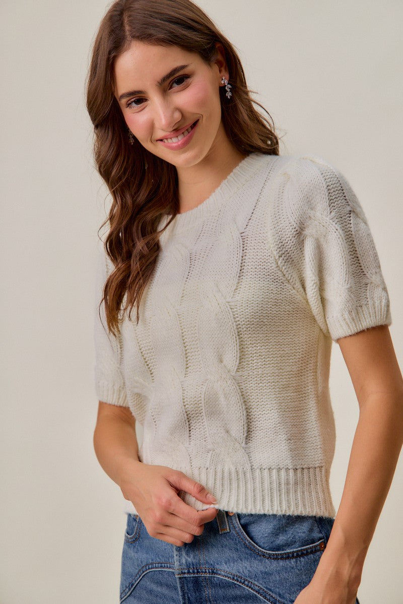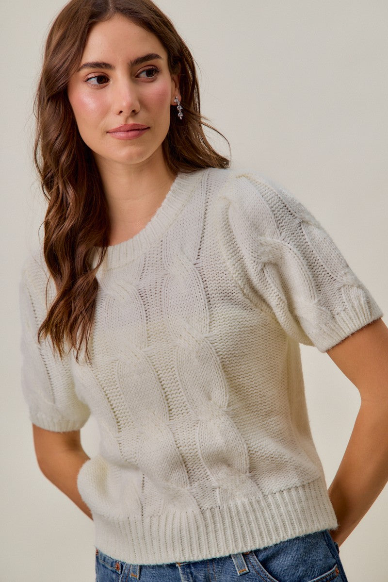 Lana Short Sleeve Cable Knit Sweater