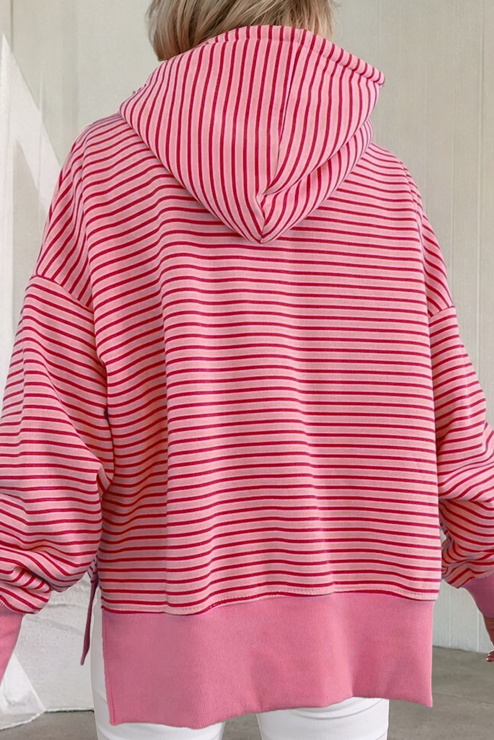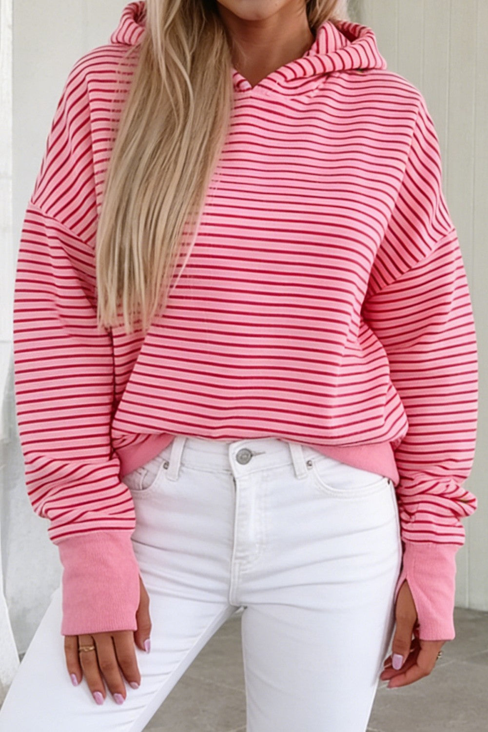 Valentines Pink & Red Stripe Hoodie With Thumbholes