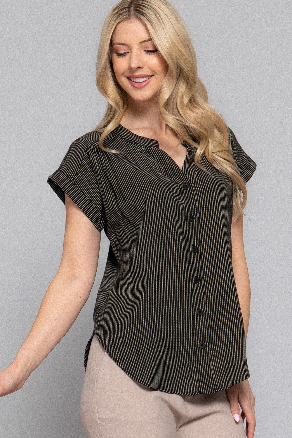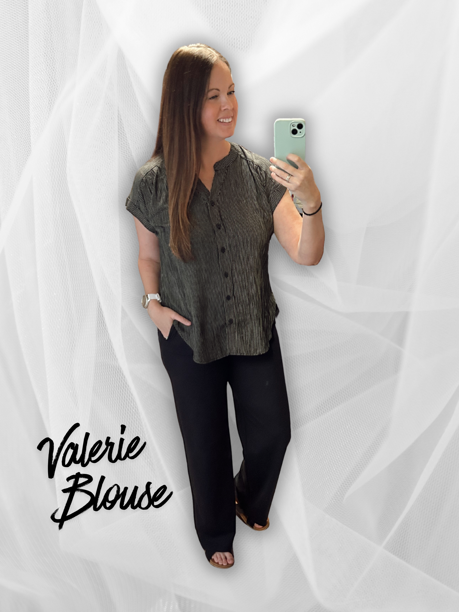 Effortless, flattering, and perfect for everyday wear—this pinstripe blouse is your new go-to for workdays, weekends, and everything in between. The subtle stripes add just the right touch of detail while keeping things classic and easy.